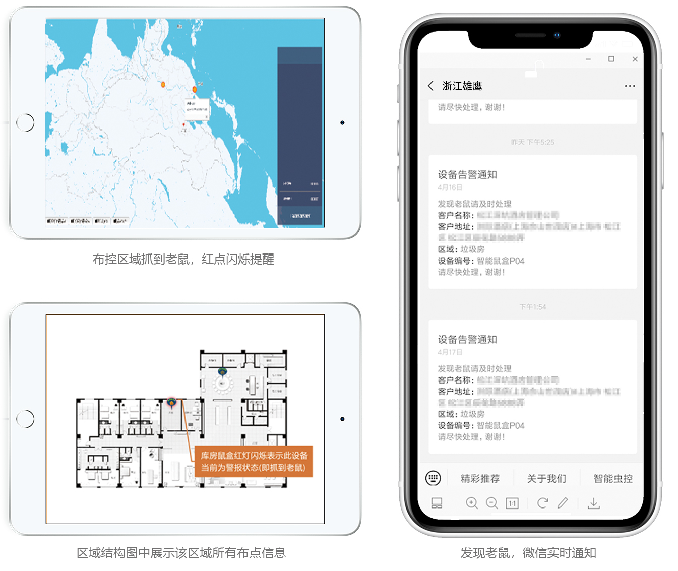 2.捕鼠後自(zì)動報(bào)警,客戶和(hé)技('₹jì)術(shù)人(rén)員(yuán)可(kě)同時(φ↑shí)收到(dào)信息,無需客戶自(zì)×↓™己實地(dì)查看(kàn)布點情況